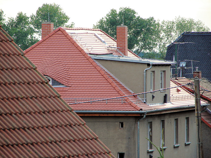 (rl) Inzwischen ist auch das Dach des Gemeindehauses in der Werner-Seelenbinder-Straße 17/19 fertig. Mit Biberschwänzen eingedeckt ist es sogar ein edles Dach geworden. Und sicher folgt auch mal die Fassade nach, sobald die Gemeinde das Geld dafür hat.