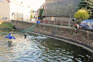 Klaus Lochmann aus Pomßen, der schon beim Aufbau der Fontäne sowie dem Einsetzen der Enten geholfen hatte, ging mit Reiner Kanitz, Armin Pöritz und Horst Baeger ans Werk.