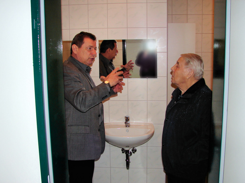Bürgermeister Kretschel nahm sich die Zeit, Altsportvater Walter Drieschner und der Schulleiterin Frau Dröger die Turnhalle mit all ihren neu geschaffenen Einrichtung vorzuführen. Ein wenig vom berechtigten Stolz auf das Erreichte war ihm dabei schon anzumerken.