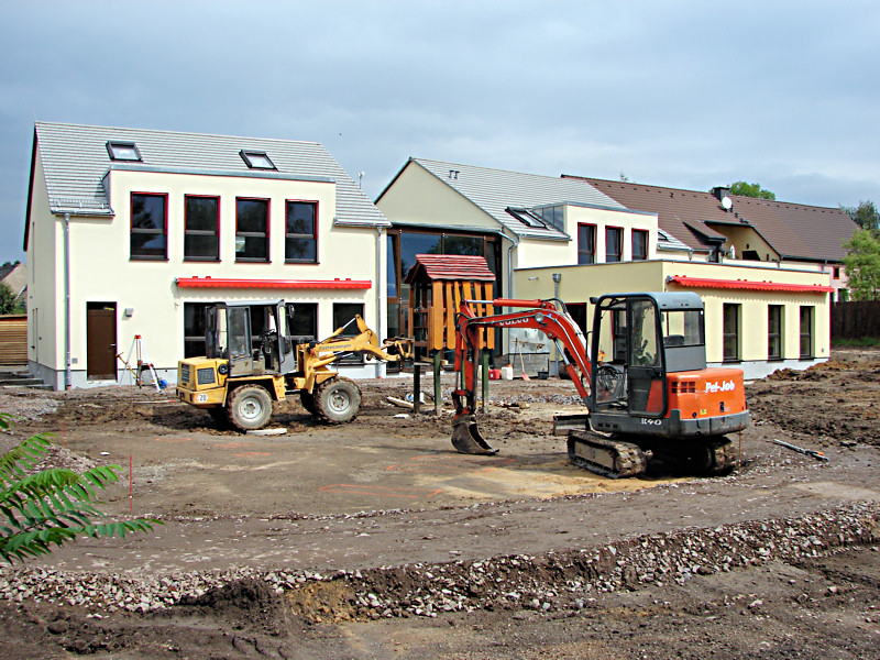 (rl) Die Firma Umwelt 2000 legt den Außenbereich der neuen Kita in der Alten Dorfstraße neu an.