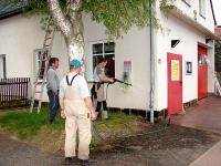 (rl) Bei der Feuerwehr wird ja in diesem Jahr doppelt gefeiert. Einmal haben die Kameraden ihr 70-jähriges Bestehen auf dem Kalender und zum Zweiten sind sie natürlich voll in die Feiern zum großen Dorffest integriert. Da wird fleißig gewerkelt und geputzt. Heute war die Fassade dran. Der letzte Staub musste dem Wasserstrahl weichen, damit das Gerätehaus in der Festwoche wie neu erstrahlt.