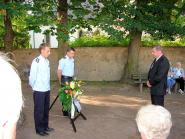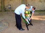 Gestern am späten Nachmittag fanden sich Parthensteiner Bürgerinnen und Bürger am Platz der Denkmäler für die Opfer der zwei Weltkriege zum Gedenken ein. Bürgermeister Jürgen Kretschel erinnerte in seiner Rede an all jene, die durch die Folgen dieser verbrecherischen Kriege gelitten, oder gar das Leben gelassen haben. Er bezog sich auf eine Inschrift, die da lautet: „Den Toten zur Ehre – den Lebenden zur Lehre“ und verwies darauf, dass wir alle zusammen glücklich sein können, eine über 60-jährige Zeit ohne Krieg erlebt zu haben. Gerade in einer Woche, in der sich das gesamte Dorf Großsteinberg wegen seines 700-jährigen Jubiläums in berechtigter Feierstimmung befindet, ist ein Moment der Rückbesinnung angebracht. Es liegt auch an uns, an unserer Toleranz im Zusammenleben, diese Zeit ohne Krieg auch für die weitere Zukunft, für unsere Kinder und Enkel, zu erhalten. Der Wehrleiter der Freiwilligen Feuerwehr von Großsteinberg und sein Stellvertreter legten im Auftrag des Bürgermeisters einen Kranz nieder. Umrahmt wurde die Veranstaltung durch zwei Soli des Klingaer Trompeters Franz Seemann.