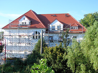 Inzwischen haben Hortgebäude und Wohnhaus an der Schule eine komplette Wärmedämmung. An den Feinheiten wird noch gearbeitet. Dann kann der Putz aufgebracht werden.