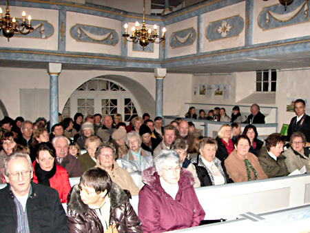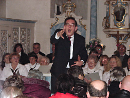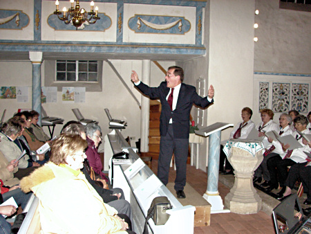 So schön die Vorweihnachtszeit in jedem Jahr ist, bringt sie doch auch immer wieder Hektik und Stress mit sich. Und wer im Arbeitsprozess steht, dazu noch Haushalt und Kinder zu versorgen hat, spürt das besonders. Da sitzt es sich in der gut besuchten und gut beheizten Klingaer Kirche schon mal recht gut, wenn man dabei den Darbietungen des Volkschores lauschen kann. Man findet wieder etwas zur inneren Ruhe und Ausgeglichenheit. Wenn unter der Leitung des Großsteinbergers Dietrich Wiesemann die Stimmen des Chores erklingen, ist das schlichtweg ein Genuss. Das ist allerdings keine neue Nachricht. Das erwartet man schon. Der Chor hat im Vorfeld jedenfalls fleißig gearbeitet, denn im Repertoire finden sich einige neue Lieder.