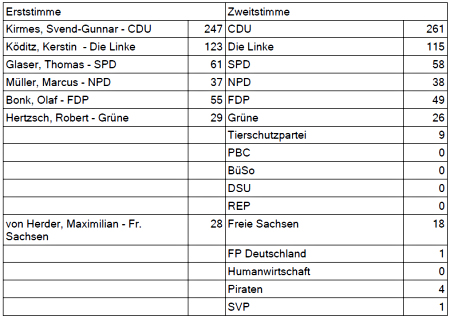 Ohne gewähr für die Richtigkeit hier die Ergebnisse aus dem Wahllokal in Großsteinberg: