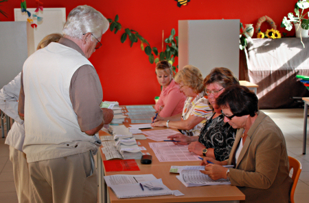 Im Wahllokal in Großsteinberg liegt in diesem Jahr erstmalig die Verantwortung in den Händen von Gudrun Last. Wie all die Jahre zuvor wurde auch heute wieder der Speiseraum der Grundschule dazu hergerichtet.
