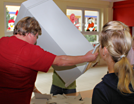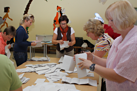 Punkt 18.00 Uhr wurde die Wahl beendet und die Wahlurne geleert. Routiniert und konzentriert begann die Auszählung.