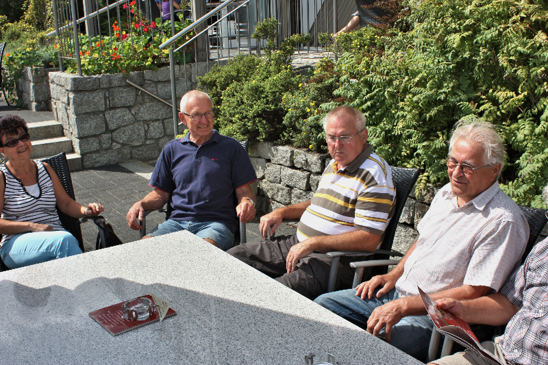 So trafen sich heute 11 Mitglieder des Vereins, bestiegen lustig und guter Dinge ihren Drahtesel, um über den Dreiflügelweg nach Waldsteinberg zum Eissalon zu fahren. Der Wind blies ab und zu ziemlich heftig und so hat man schon gemerkt, wer gut trainiert ist. 14.00 Uhr gings an der Heimatstube los und kurz vor 15.00 Uhr waren wir am Ziel. Ein Tisch, frei bis 16.00 Uhr, war für uns genau das Richtige. So nahmen wir Platz, wählten aus dem reichhaltigen Angebot für jeden das Beste und ließen uns die Kunstwerke aus Eis und vielen bunten Zutaten genüsslich schmecken. Kurz vor 16.00 Uhr brachen wir wieder auf und waren nach einer vergnüglichen Heimfahrt gegen 17.00 Uhr wieder zurück. Das ist Heimatverein, wie er Freude macht.