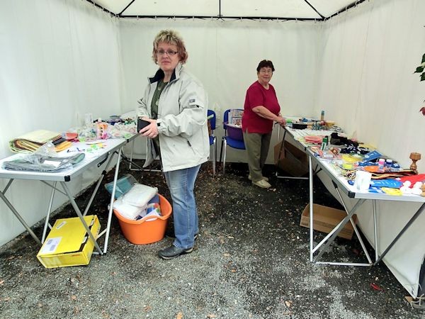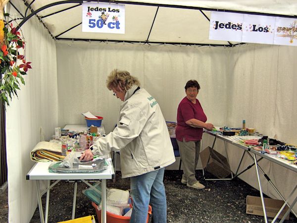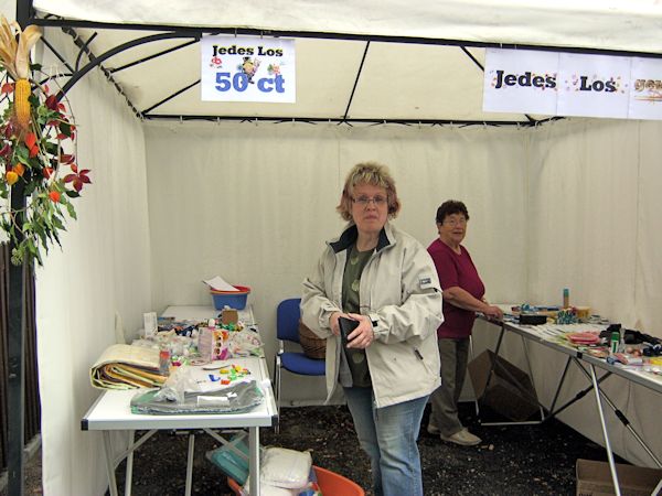 Die Nachfrage nach unserem Steinofenbrot war wie üblich groß und der Kuchen von Bäckermeister Werner Voigtländer zeigte sich ebenfalls als Renner. Jochen Künne und Dieter Schönfeld am Grill brauchten sich über mangelnde Nachfrage auch nicht zu beklagen. So viele Kinder, wie diesmal Monika Langhofs Bastelecke aufsuchten, konnten wir bisher noch nie begrüßen. Platz- und Belastungsgrenzen waren erreicht. Und auch bei allen übrigen Vereinsmitgliedern in Verkauf und Küche war nach dem Abbauen und wegräumen am Abend die Kraft so ziemlich aufgebraucht. Der Heimatverein ist kein Jugendclub. Da regeneriert man etwas langsamer.