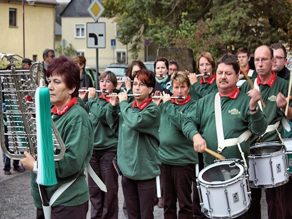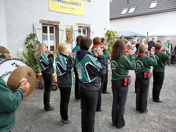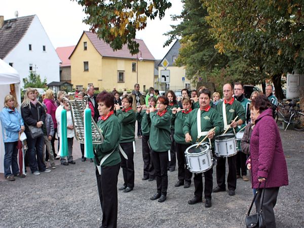 Einen besonderen Höhepunkt stellte die Ausstellung zur Erinnerung an den Großsteinberger Spielmannszug dar. Er wäre in diesem Jahr 50 Jahre alt geworden. 1963 gegründet, hat er sich irgendwann in den 1990er Jahren unbemerkt aufgelöst. Viele Ehemalige haben mit reichlich Material aus ihrer aktiven Zeit zur Gestaltung dieser kleinen Schau beigetragen. Axel Hofmann, der Initiator dieser Veranstaltung sowie sein Bruder Günter engagierten sich in besonderer Weise. Als Söhne Hans Hofmanns, des Gründers und langjährigen Chefs des Großsteinberger Spielmannszuges, hatten sie ja selbst alles durchlaufen, was eine solche Gruppe junger Spielleute zu bieten hat, vom Trommler bis zum Stabführer. Den Höhepunkt der Ausstellung bildete der Auftritt der „Thümmlitzwalder Spielleute“. Sie ließen mit ihrem Spiel noch einmal die Erinnerungen wach werden, wie es war, als die Großsteinberger selbst noch getrommelt und gepfiffen haben.