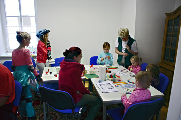 In diesem Jahr konnten wir uns über eine Teilnahme von außerhalb freuen, wie sie sonst nicht üblich ist. Die Pomßener Schlossmäuse zeigten auf einer Tafel einiges über ihr Projekt „Kinder und altes Handwerk“.