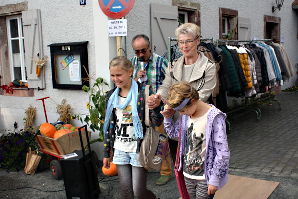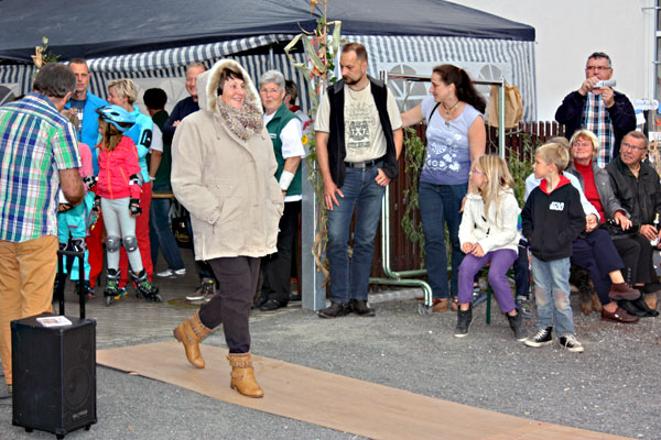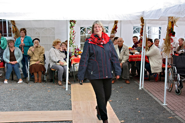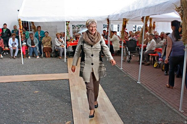 Höhepunkt des Nachmittages war die etwa einstündige „Lustige Modenschau mit Michael Kefalas“. Die sechs Models aus der Gemeinde, Loni Mövius, Kerstin Post, Christa Sander, Bärbel Erl, Eva Weste und Heidi Hellmich, haben wieder wirklich tragbare Mode vorgeführt, begleitet von den kommentierenden Worten Kefalas’.