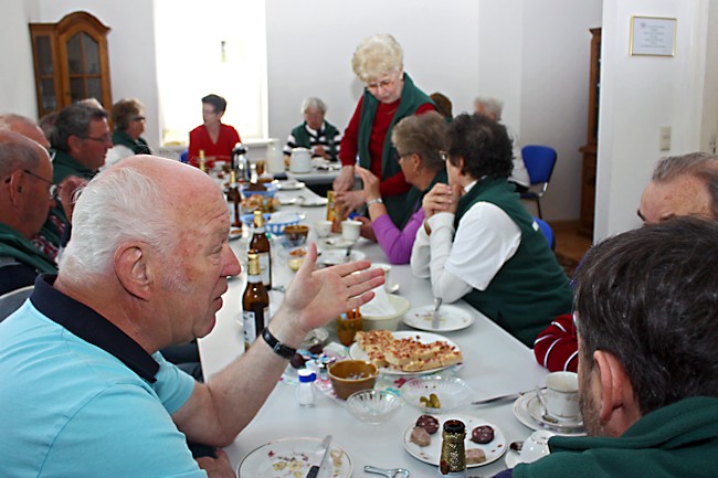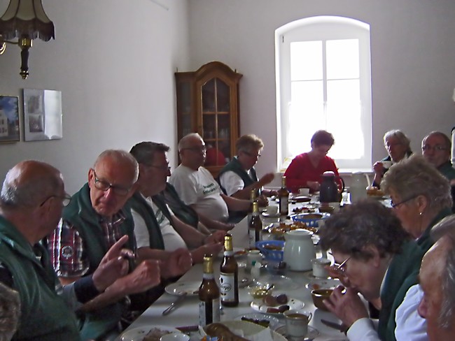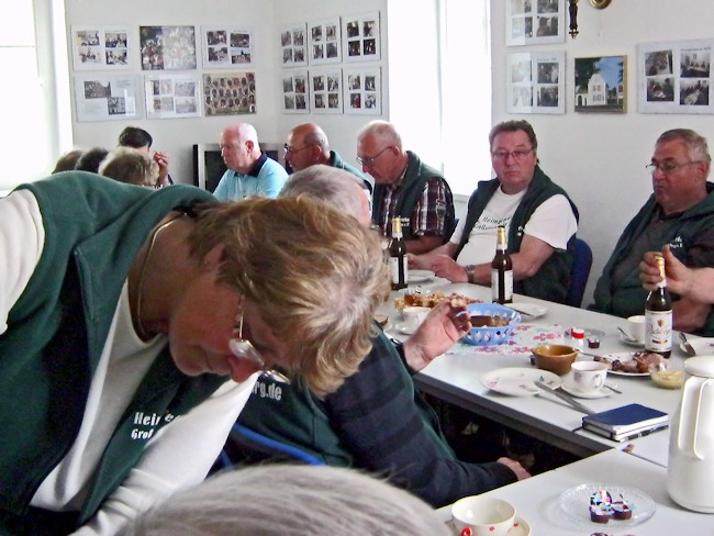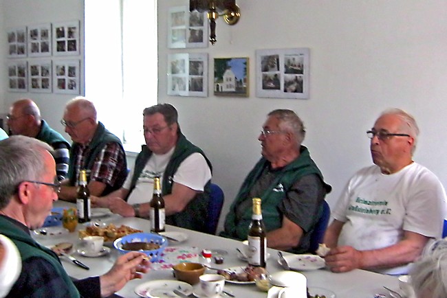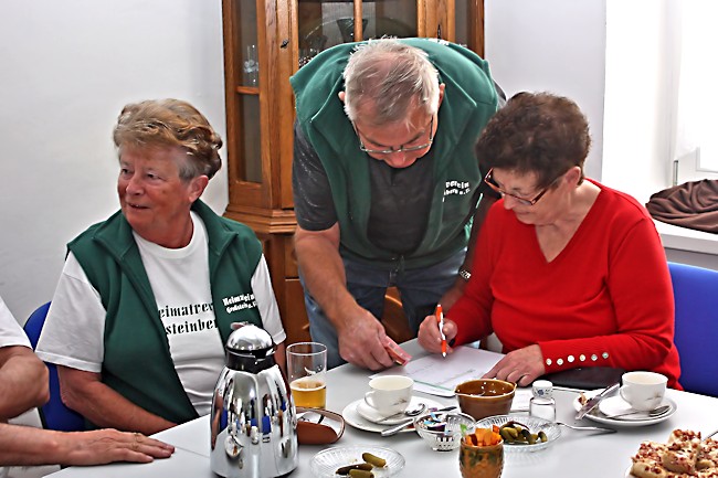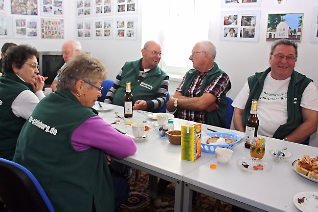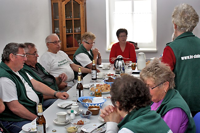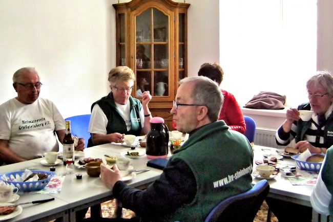 Im Frühjahr des Jubiläumsjahres 2008 wurde der historische Backofen an der Alten Schule, dem Heimathaus des Großsteinberger Heimatvereins, von Vereinsmitgliedern wiedererrichtet und am 30. April eingeweiht. Seither feiern die Mitglieder dieses Ereignis, so auch heute. Natürlich heizten die Bäcker auch in diesem Jahr den Ofen an, um für die Mitglieder des Heimatvereins Brot zu backen. Eines davon wurde aufgeschnitten und, frisch mit selbst bereitetem Fett bestrichen, verzehrt – ein Genuss. Die Frauen des Vereins hatten für die nötigen Zutaten gesorgt. Werner Voigtländer, Bäckermeister i. R. und ebenfalls dem Verein zugehörig, schob noch zwei Bleche mit Speckkuchen nach, der anschließend noch ofenwarm genossen wurde. Die nötigen Getränke rundeten das ausgedehnte Mahl ab. Die Neuigkeitenbörse kam so richtig in Schwung.Die Mitglieder verlebten ein paar schöne Stunden in geselliger Runde.