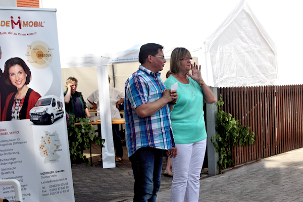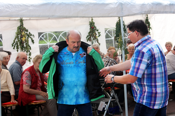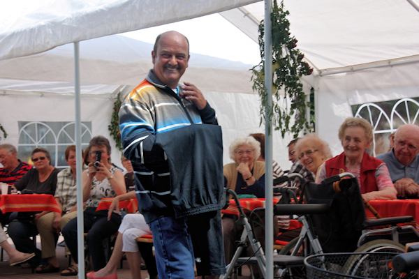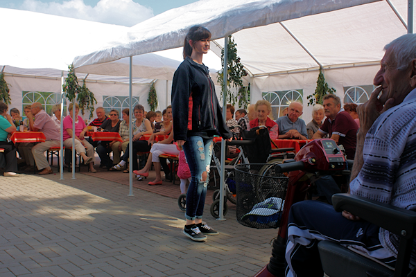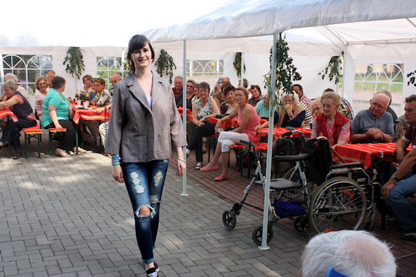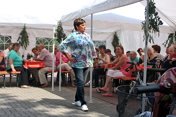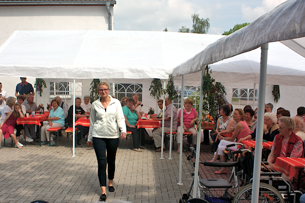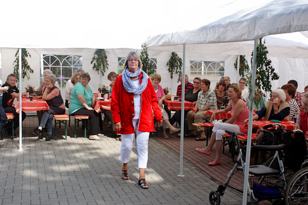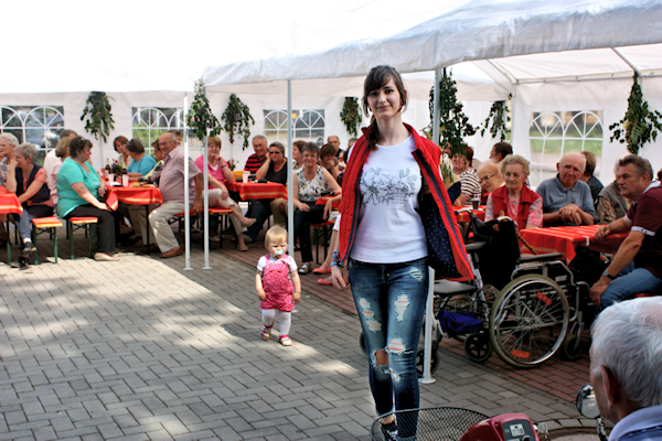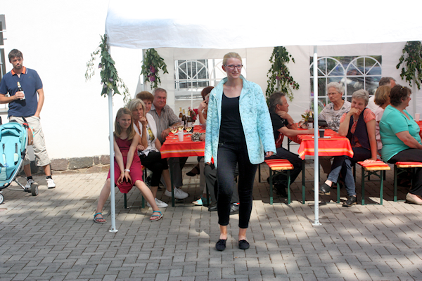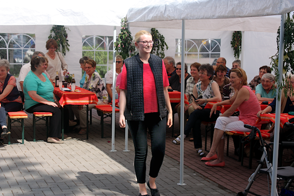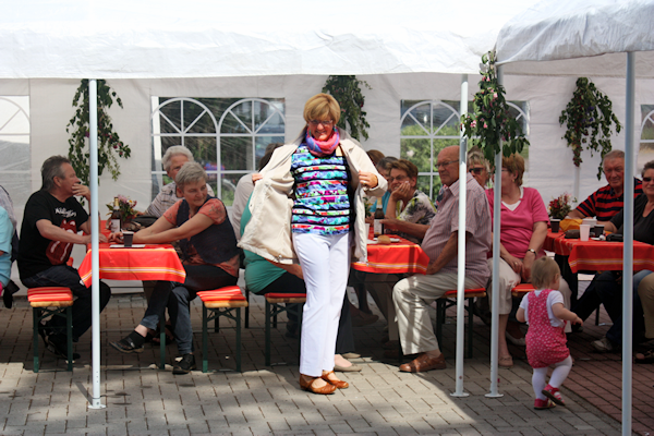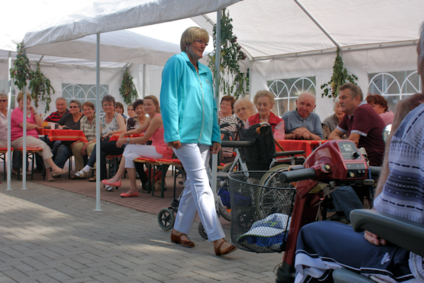 Nachdem unser bisheriger Modenschaugestalter Michael Kefalas in seinen wohlverdienten Ruhestand gegangen ist, war es möglich, kurzfristig Thomas Stolle mit seinem Modemobil zu verpflichten. Mit 1400 Artikeln Damen- und Herrenmode sowie einer Auswahl von Schuhen war er gut bestückt. Sechs Models aus dem Dorf führten ausgewählte Stücke in lockerer Weise und gekonnt vor. Die Präsentation war unter das Motto „Kreuzfahrt“ gestellt worden. Belohnt wurden sie durch den reichlichen Applaus der Besucher.