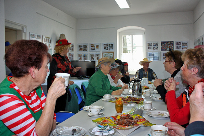 Im karnevalistisch geschmückten Vereinsraum trafen sich die passend kostümierten Mitglieder des Heimatvereins am Rosenmontag zur Kaffeezeit, um gemeinsam ein paar schöne Stunden zu erleben.