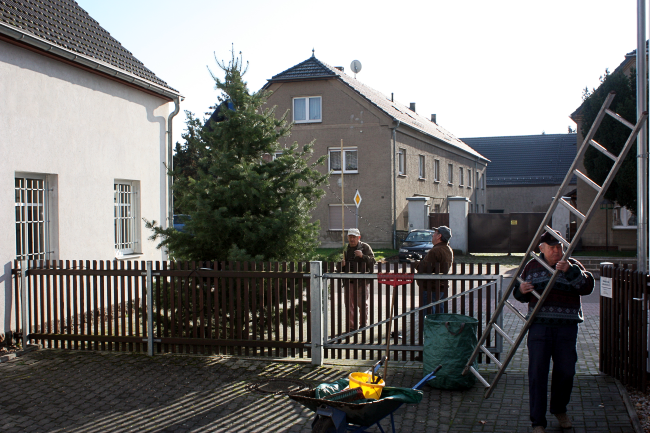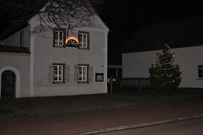 Mitglieder des Heimatvereins haben heute wieder dafür gesorgt, das rechtzeitig ein Weihnachtsbaum aufgestellt ist. Und der von Günter Pfarr in mühevoller Kleinarbeit mit Großsteinberger Motiven hergestellte Schwibbogen hat ebenfalls wieder seinen Platz gefunden.