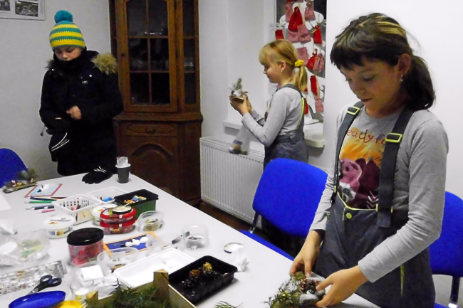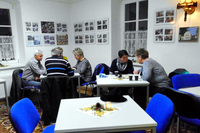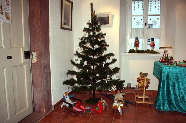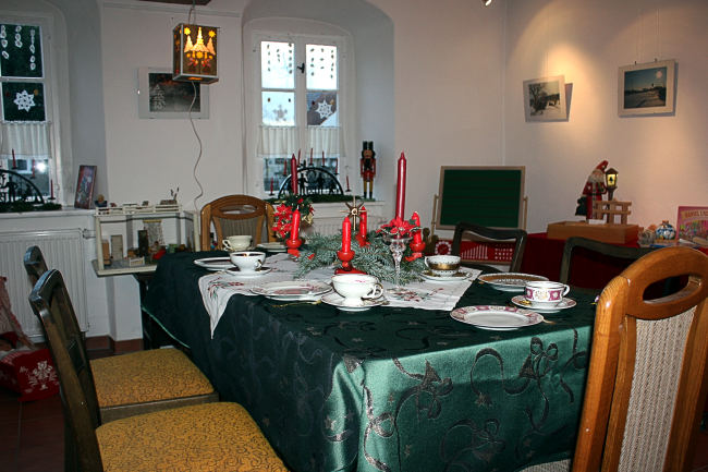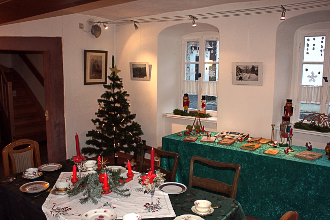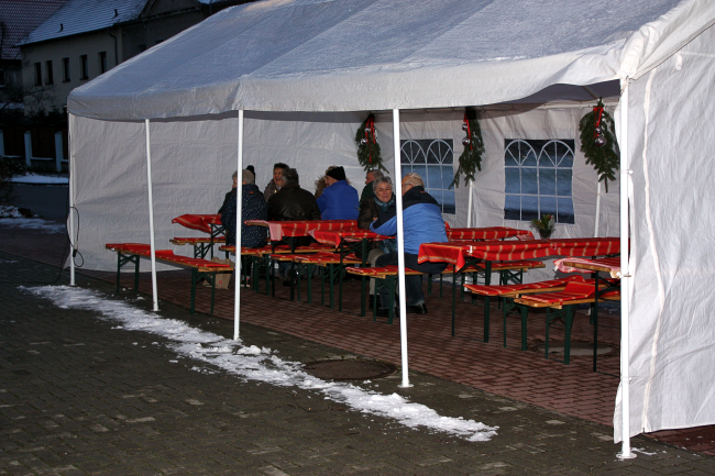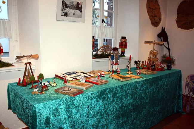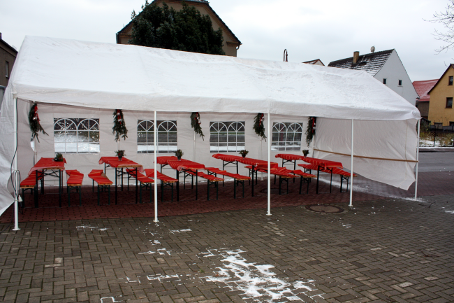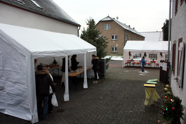 Obwohl das Wetter nicht ganz so einladend war, bauten die Mitglieder des Vereins am vergangenen Sonnabend Fest- und Verkaufszelt auf und präsentierten ab Nachmittag ihre Kräppelchen, Kartoffelkuchen und frisch gebackenes Brot aus dem historischen Steinofen. Die passenden Getränke, allem voran der unverzichtbare Glühwein standen ebenso bereit. Der Grill war angeheizt und die Bastelecke vorbereitet und eingerichtet. In der ehemaligen Schulstube hatten die Frauen des Vereins eine Ausstellung organisiert und präsentierten Geschenke, wie sie zu Omas Kindertagen auf dem Gabentisch zu finden waren.