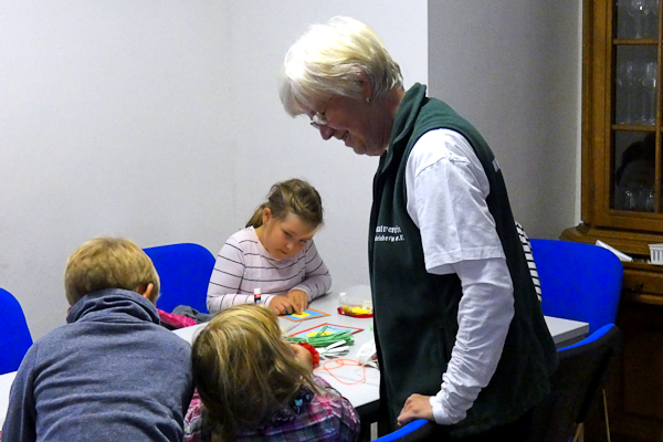 Unsere Bastelmeisterin Monika war doch wieder mit neuen Bastelideen vor Ort. Das Interesse der kleinen Besucherinnen und Besucher belohnte sie dafür.